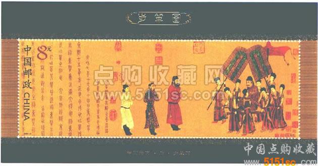 “步辇图”小型张是中国邮政2002年3月16日发行的,虽说当时的市场气氛不佳,但这枚小型张还是成为了集邮者和投资者追逐的目标,价格最高的时候达到了38元,可惜好景不长,由于资金的短缺和撤离,其价格一落千丈,最低之时跌落至7.5元,一举击穿8元的面值,这足以能说明当时市场环境糟糕到了何种程度。