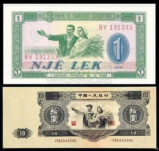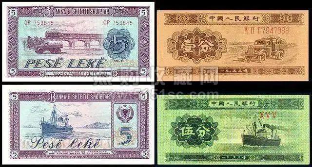 阿尔巴尼亚的这套纸币,在设计风格上也与我国的三版币非常相似,还被称为“ 2.5套人民币”。