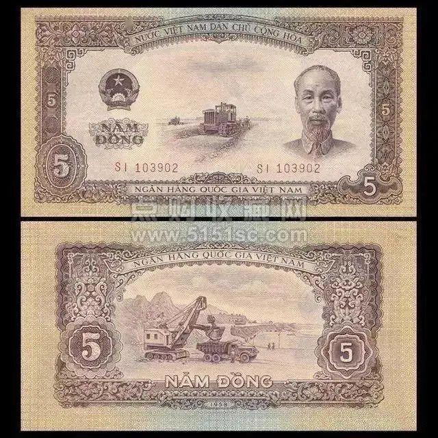 在越南发行的1957、1965、1968年三套纸币,都是由我国帮其印刷。有些越南纸币上,还印有中文字样。