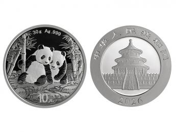 30克圆形银质纪念币为普制币,含纯银30克,直径40毫米,面额10元,成色99.9%,最大发行量5000000枚。
