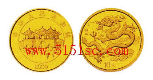 1/10盎司圆形金质纪念币为普制币,含纯金1/10盎司,直径18毫米,面额10元,成色99.9%,最大发行量48000枚。