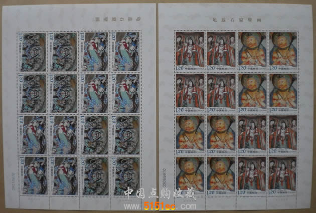 2008-16 龟兹石窟壁画大版票,一版8套票。点购收藏网出售的所有大版票均保真,请放心购买!