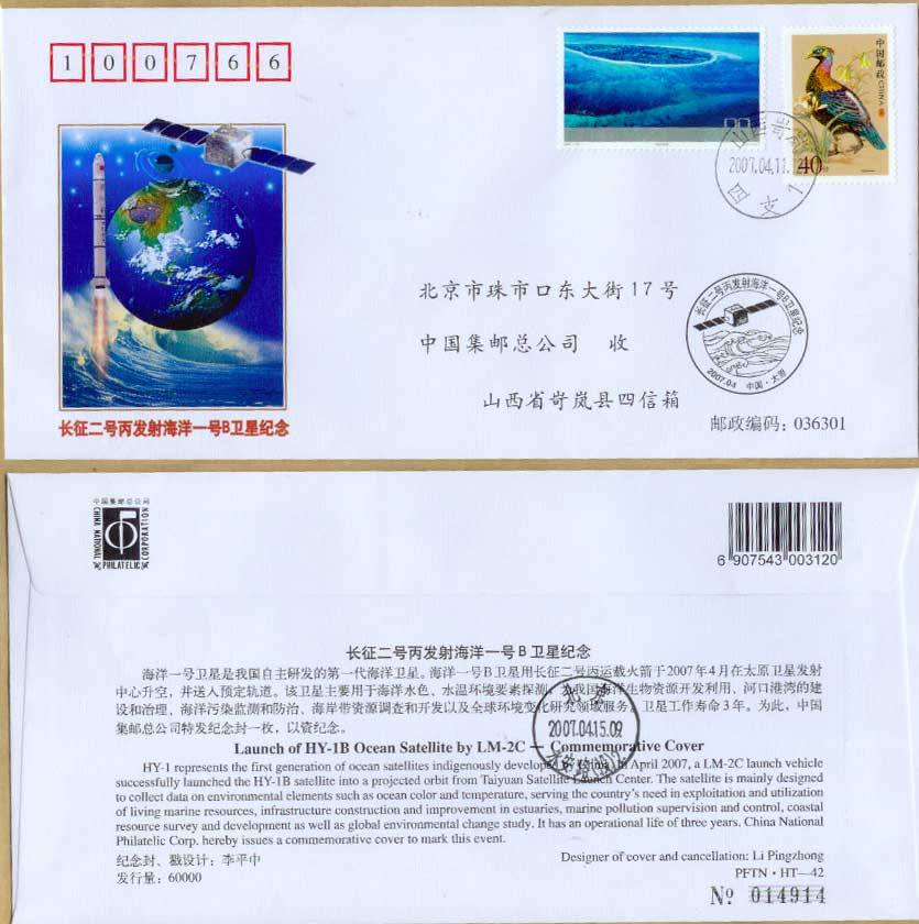HT42 长征二号丙发射海洋一号B卫星纪念