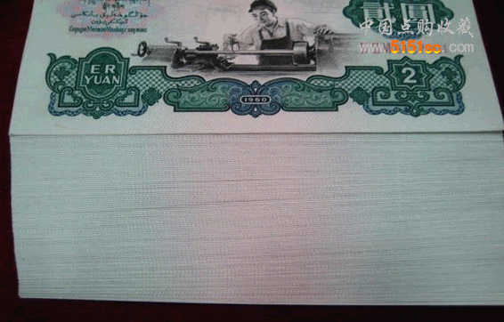 【藏品名称】第三套人民币五星水印贰元(百张连号)