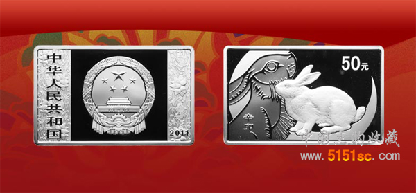 该套银质纪念币背面图案为兔的写实造型衬以装饰兔首为背景,并刊面额及“辛卯”字样。