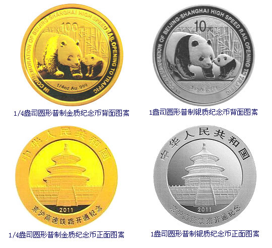 【藏品名称】2011年京沪高速铁路开通熊猫加字金银纪念币