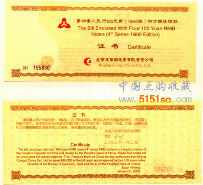 发行于2002年,发行量20万张,面值400元,发行之初市价约430元,属于早期发行连体钞的品种,外包装吉祥且大气,礼品消耗较大。发行时压货人较少,导致比较分散,现在绝对难找到100套连号的。